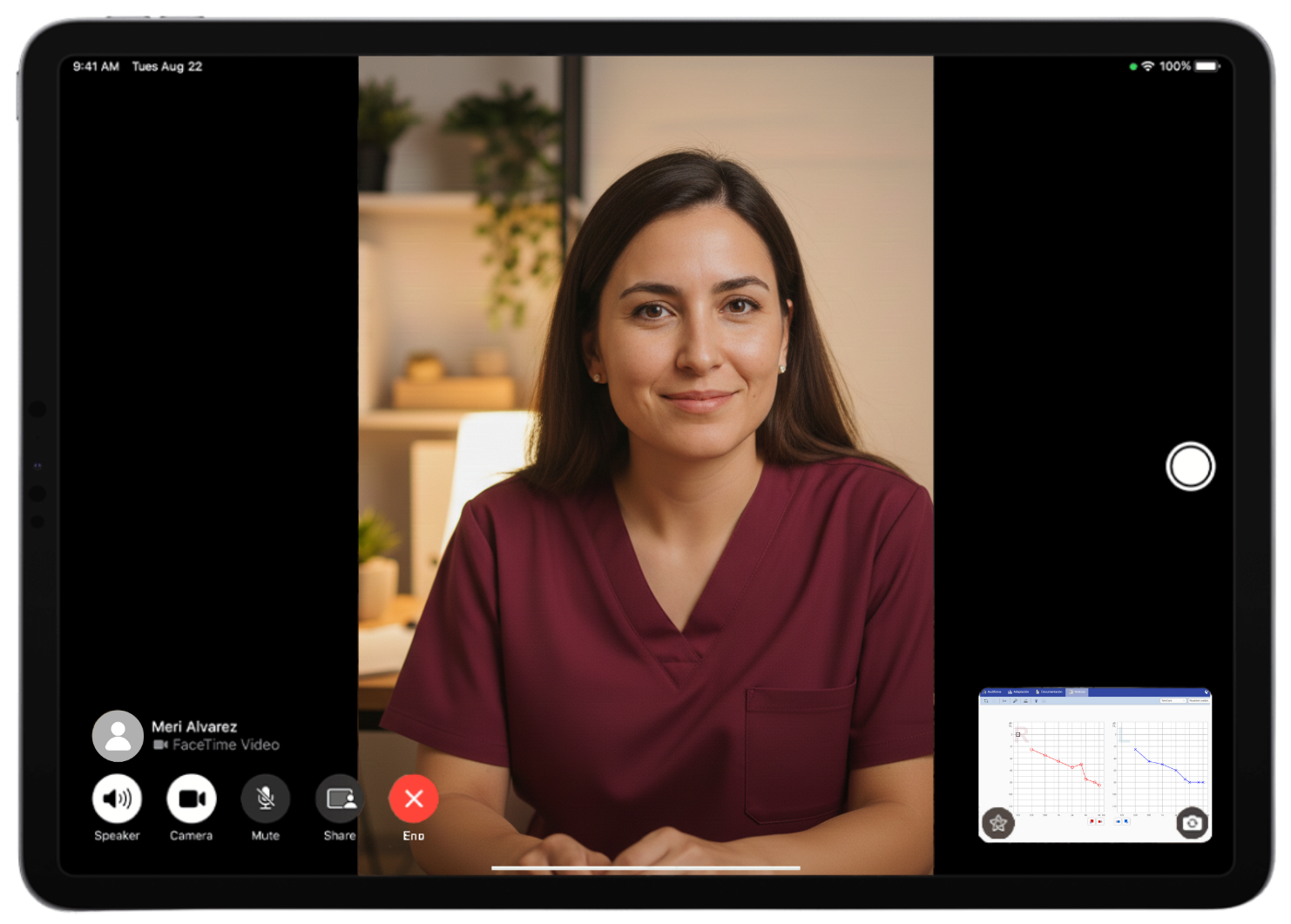 Tu bienestar no termina con la entrega. Si necesitas ajustar tu audífono, ¡estamos a una videollamada de distancia! Nuestros audiólogos se conectarán contigo para realizar ajustes en tiempo real que recibirás directamente en la App de tus audífonos.